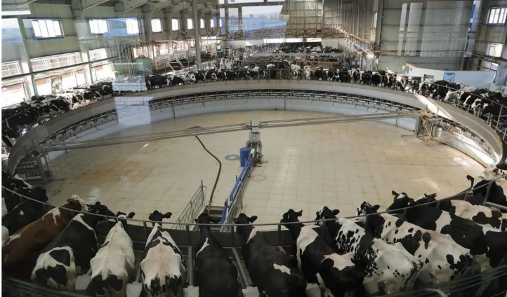 海高牧業(yè)正在運作的轉盤式擠奶設備。